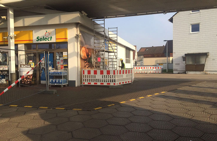 Modernisierung des SHELL-Tankstellenshops in Baden-Württemberg und Erneuerung der Shop-Einrichtung auf neuesten Standard. Ausführung von Fliesen- und Trockenbauarbeiten, Elektro- und Sanitärinstallation.